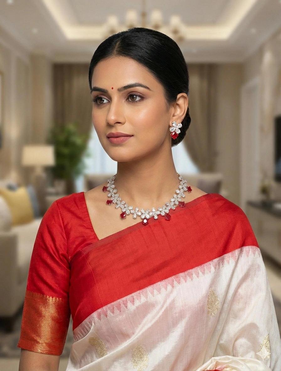 Structured neckline layout designed for festive and occasion wear.