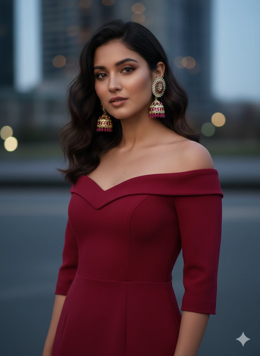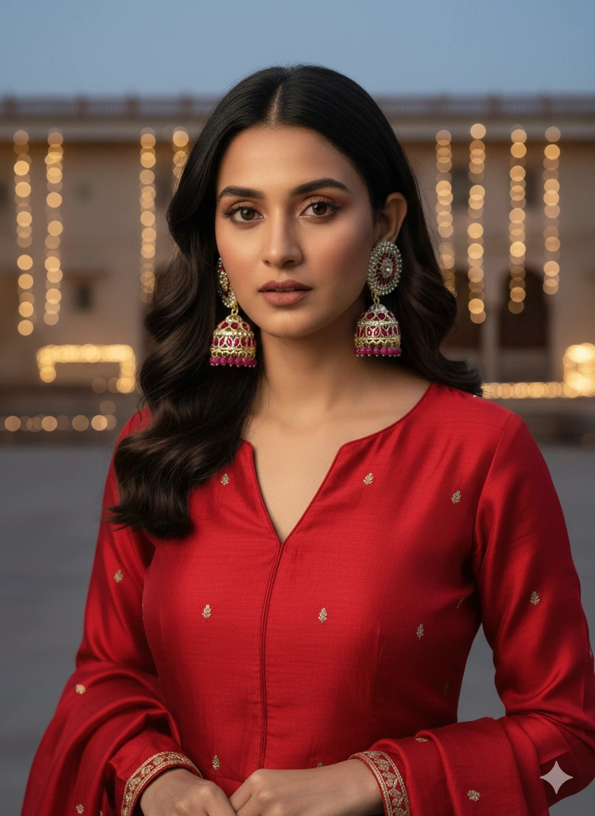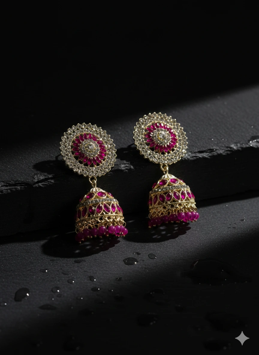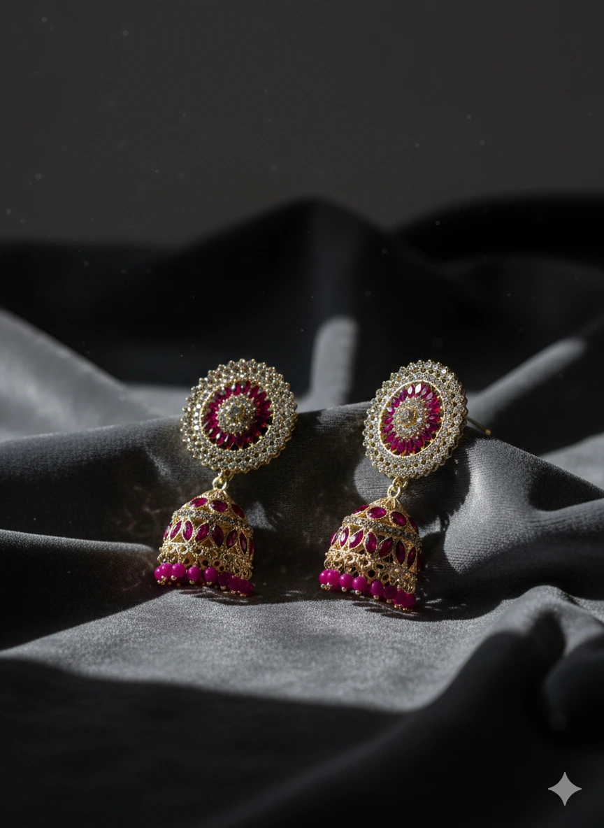 Deep Ruby Pink Jhumka Earrings