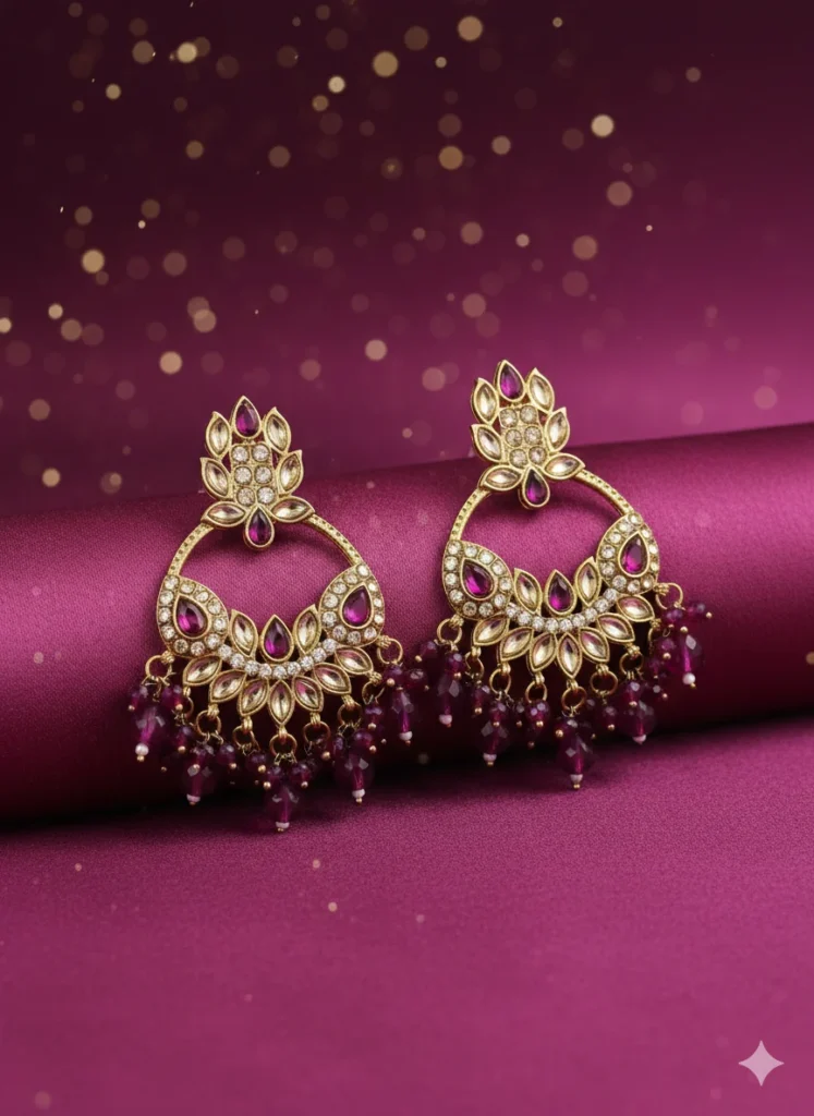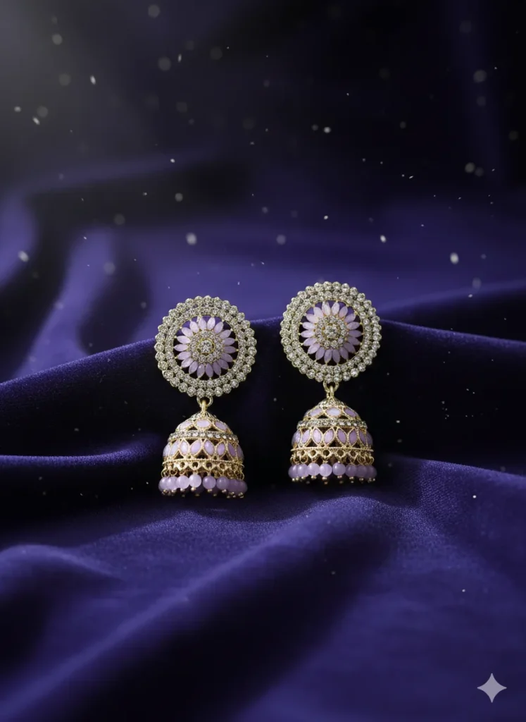Designed for traditional and festive wear, these earrings offer classic jhumka styling, balanced proportions, and decorative surface detailing within an affordable price range.