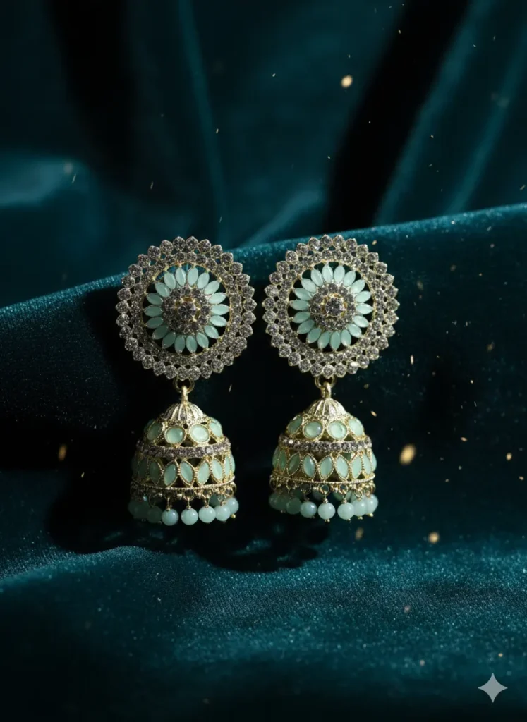* Design Pattern: Circular stud top with dome shaped jhumka drop