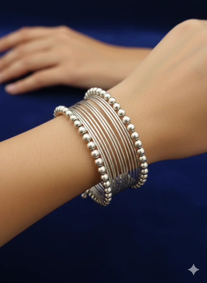 Suitable for casual outings, festive occasions, or evening styling, this bracelet adds a clean metallic shine to the wrist while maintaining a modern and versatile look.